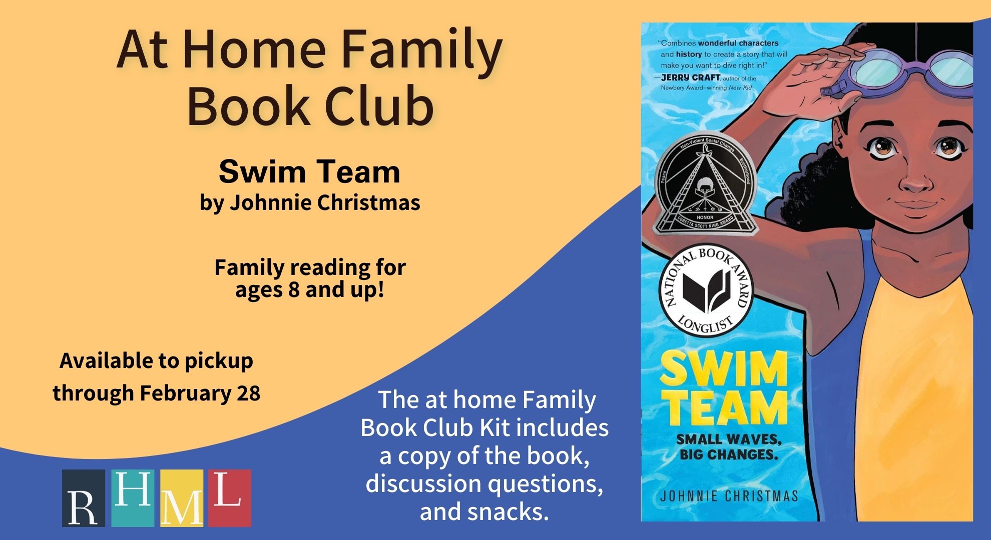 A graphic novel about overcoming the fear of swimming, and joining together as a community. The At-Home Family Book Club Kit includes a copy of the book to check out, discussion questions, and snacks. Kits are available first come, first served in the Children’s Library. Or register by February 15 to reserve your copy! Books will be […]